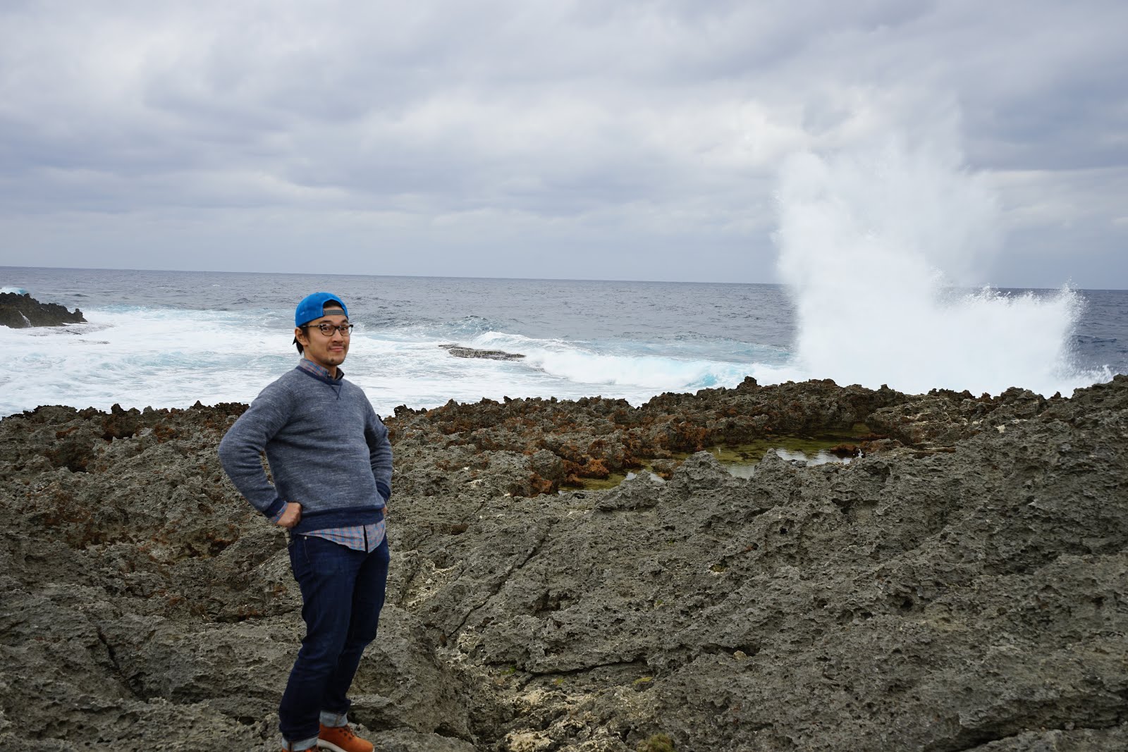 ドッカ〜ンと音を立てる海!グラサンを吹き飛ばす風!!